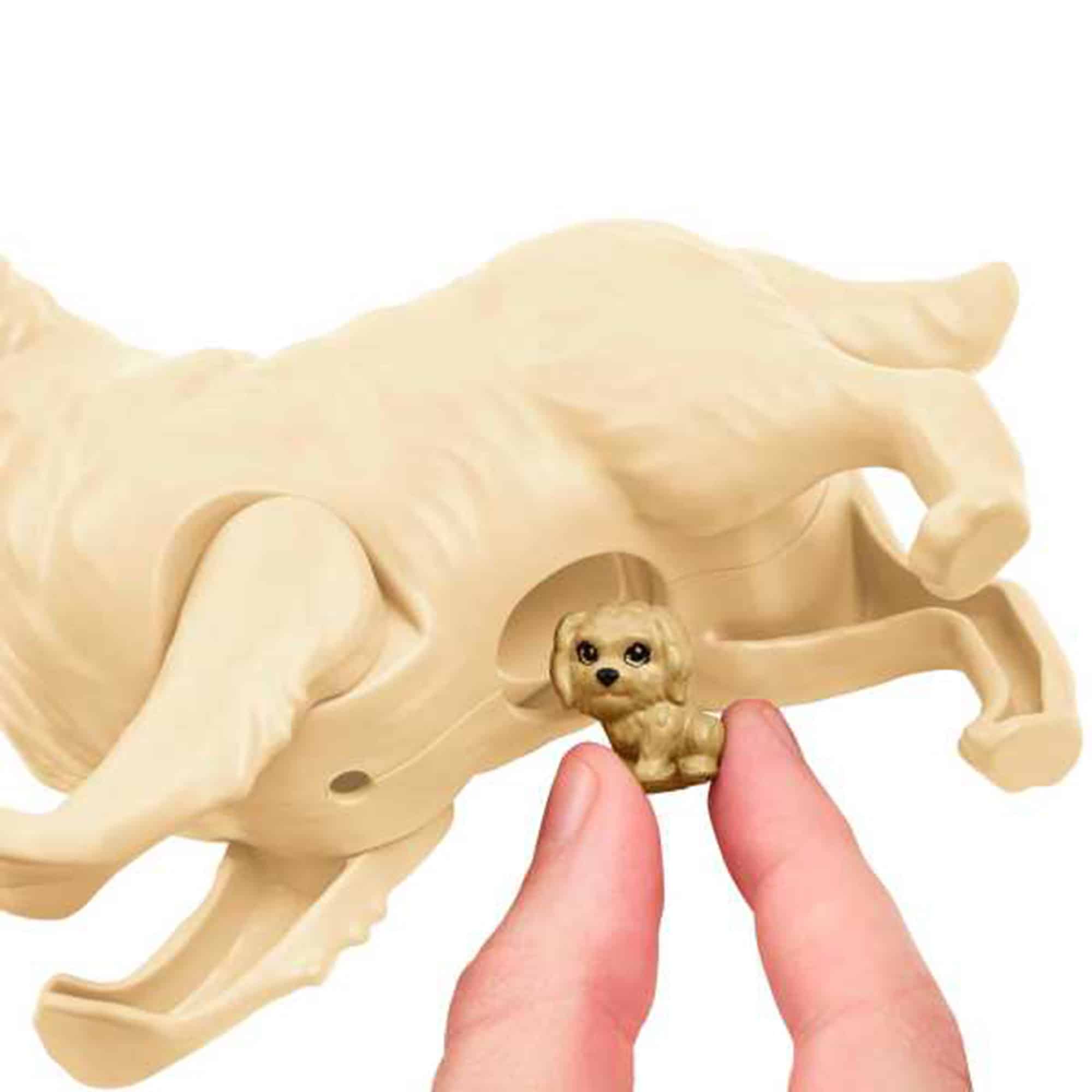 - Press down on mommy dog’s back to help Barbie® doll deliver a puppy, then press again to welcome 2 more!
