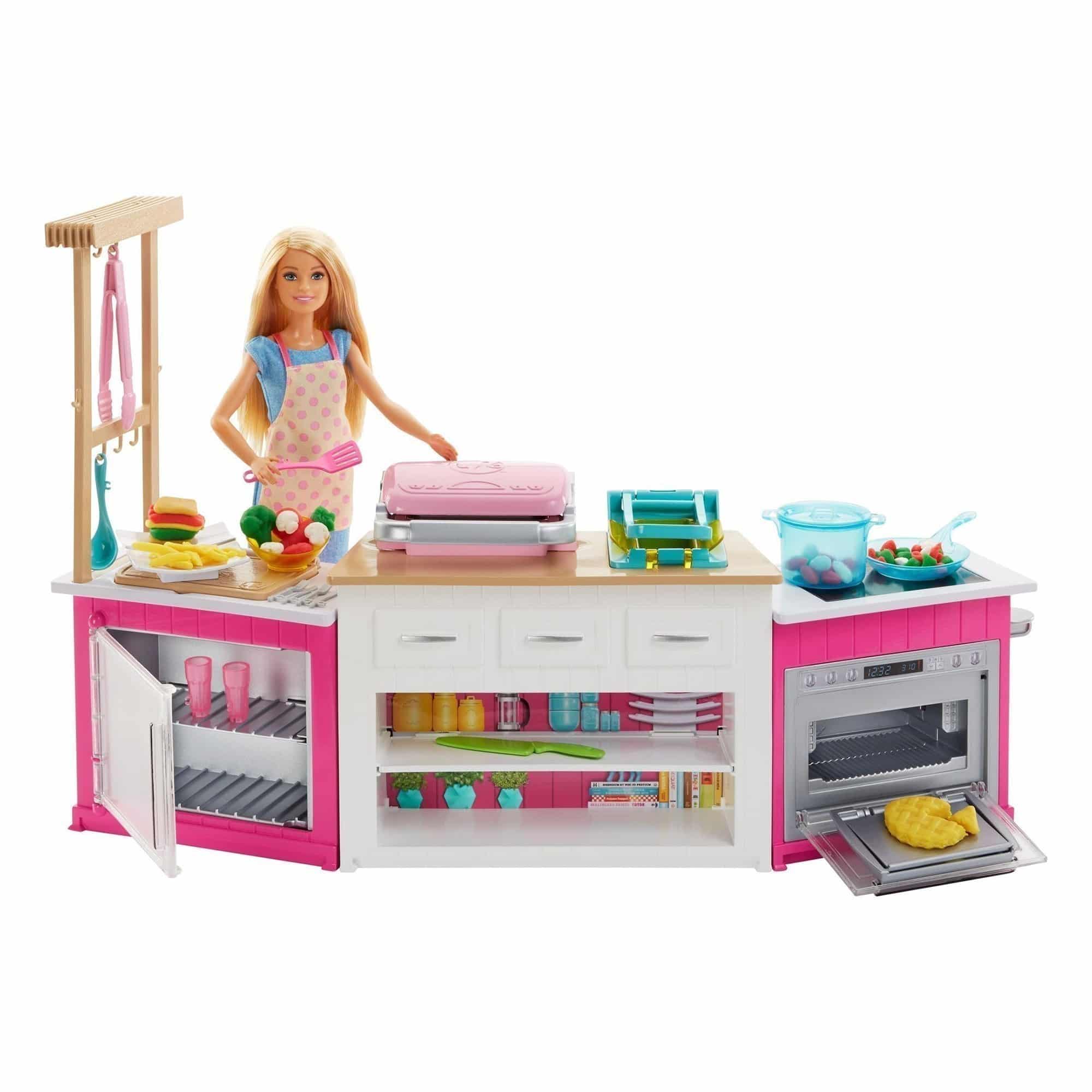 Barbie® doll inspires young chefs to cook up imaginative stories and meals! The Ultimate Kitchen playset - with working features and amazing accessories - provides kids with all the ingredients they need to prepare delicious dishes, from simple snacks for one to gourmet dinners for family and friends!