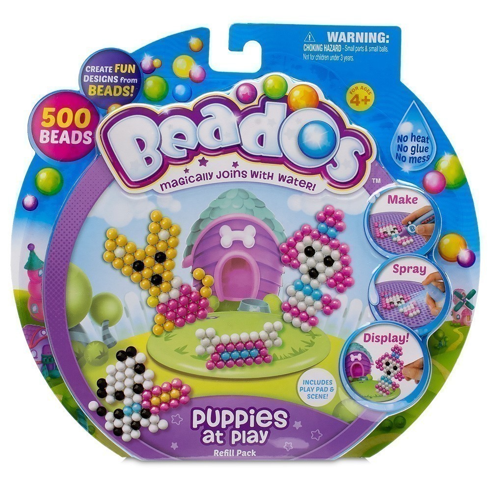 Add onto your Beados™ world with some of these amazing themed Beados™ Refill Packs from Moose®! Each theme contains 500 beados that magically join with water! Choose from six cute themes such as Ice Cream Treats, Royal Nursery, Fairy Meadows, Pony Stables, Camping Out, and Puppies At Play! Connect them altogether to build up your Beados™ world.