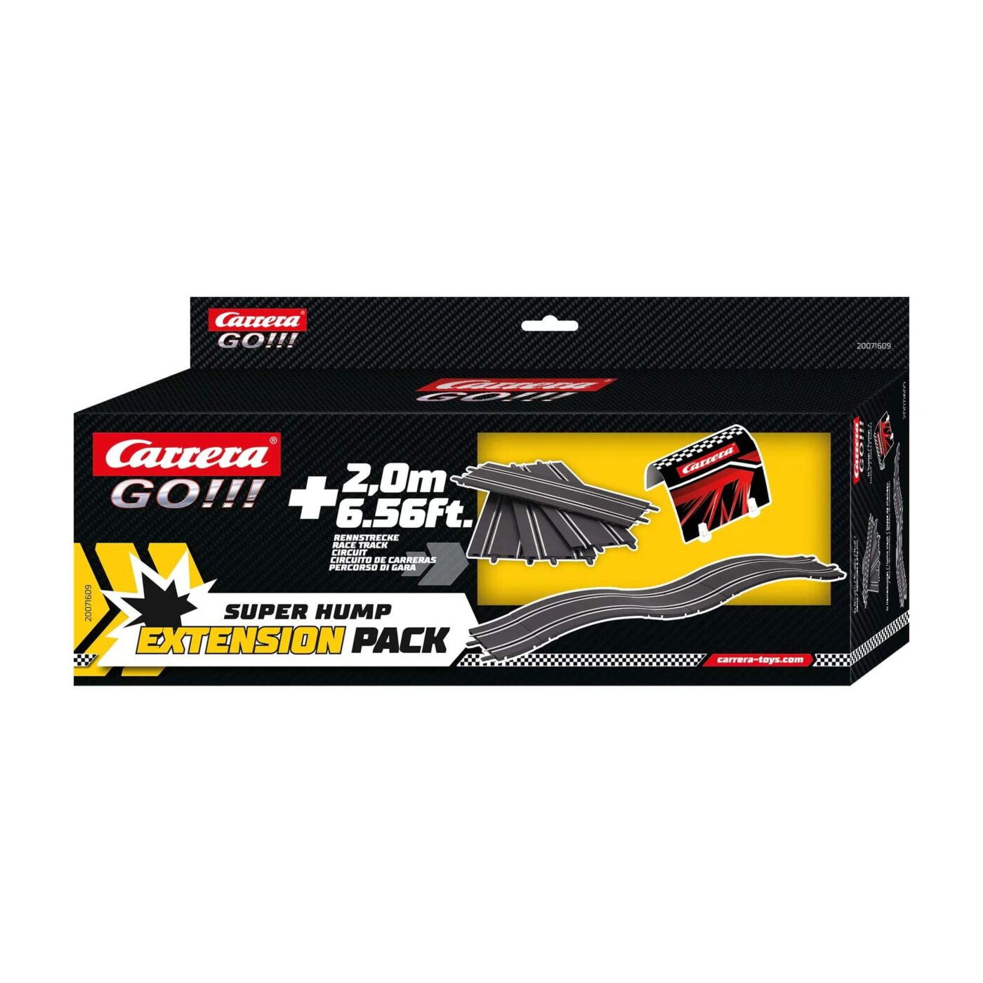 Take your Carrera GO!!! racing to the next level with the Carrera Super Hump Extension Pack (20071609). Add 2.0 m (6.56 ft) of new track sections that lift your cars high above the competition! With curved ramps, bridge supports, and a finishing gate, this pack adds more excitement, height, and challenge to your existing Carrera GO!!! Or GO!!! Plus track system.