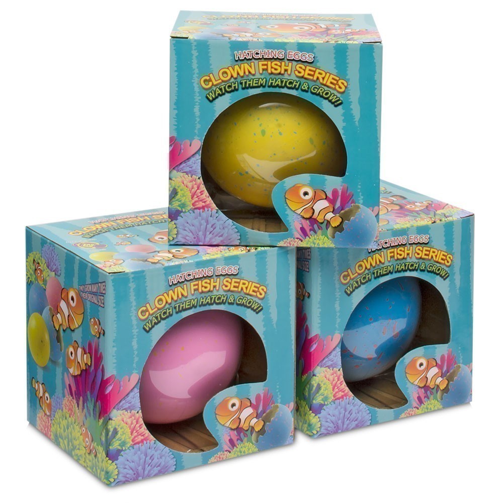 Completely submerge the Clown Fish Egg in water and watch the little fish inside hatch! Leave the open/broken egg in the water to allow your Clown Fish pet to grow many times its original size!
