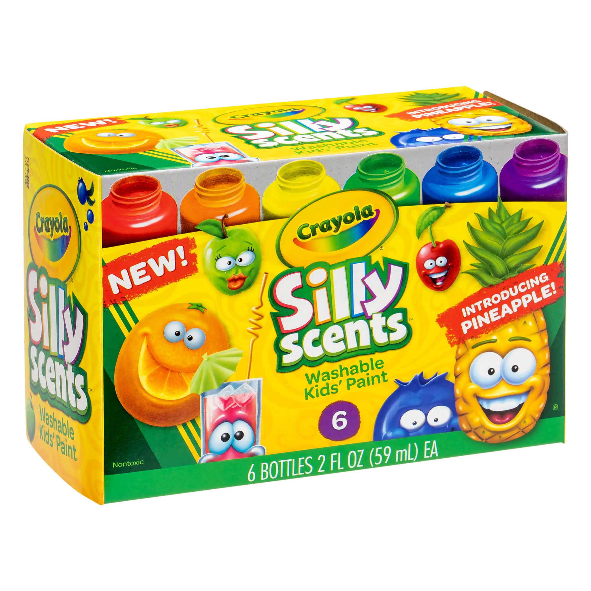 Excite your senses with stunning colour and fruity smells with this awesome pack of Silly Scents from Crayola! Included are 6 washable kids' paint bottles that are infused with flavourful scents and colours to match! Paint colours wash off skin and can be easily cleaned from most clothing fabrics too!