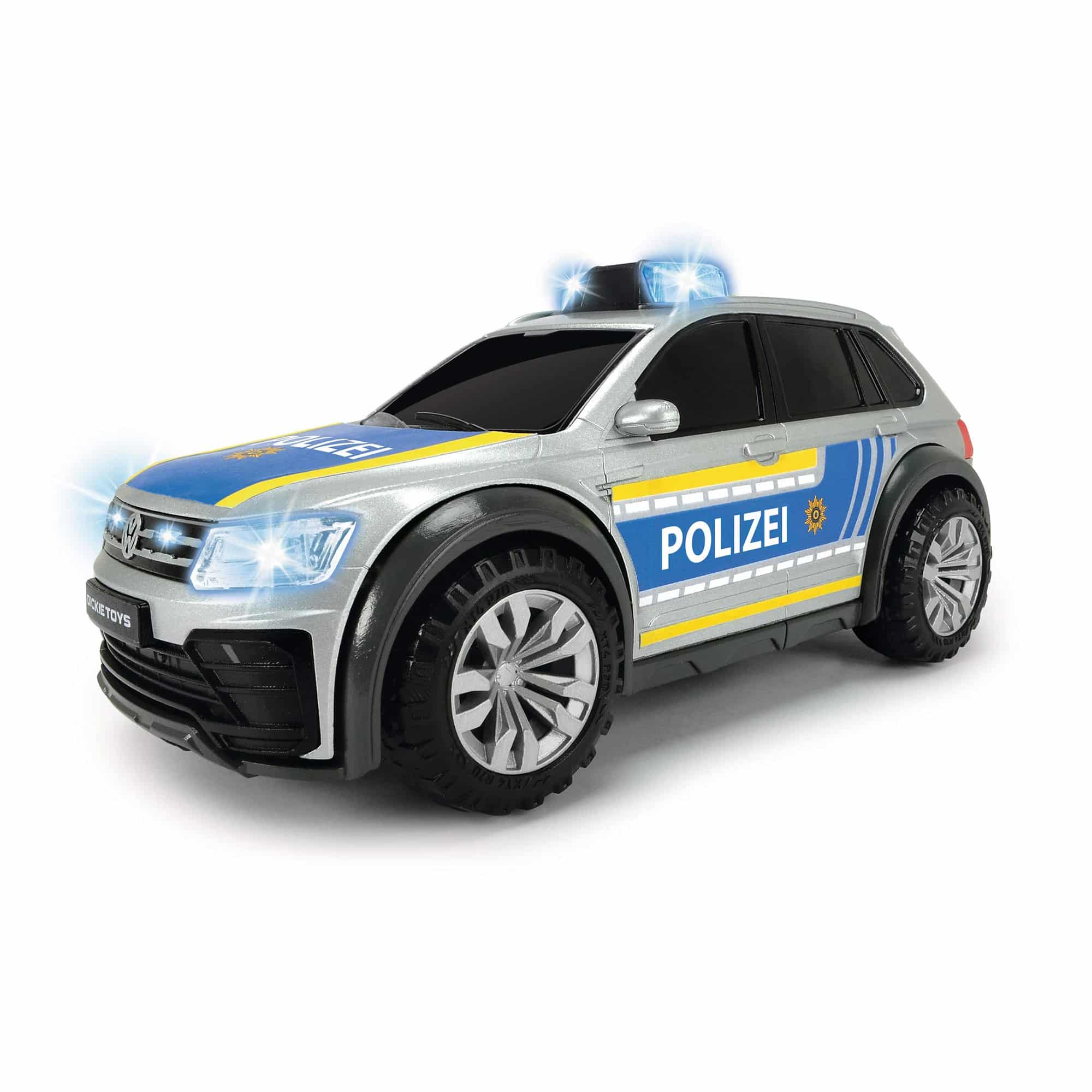 Dickie Toys give a new face to familiar car models. The German version police VW Tiguan R-Line was modelled on the full-sized original with great attention to detail and equipped for emergency operations in the children's room. At the press of a button, the toy car with free-wheel to a scale of 1:18 produces authentic light and sound effects. The police VW Tiguan R-Line is the perfect collector's piece for young motor fans from three years of age. Batteries are included.