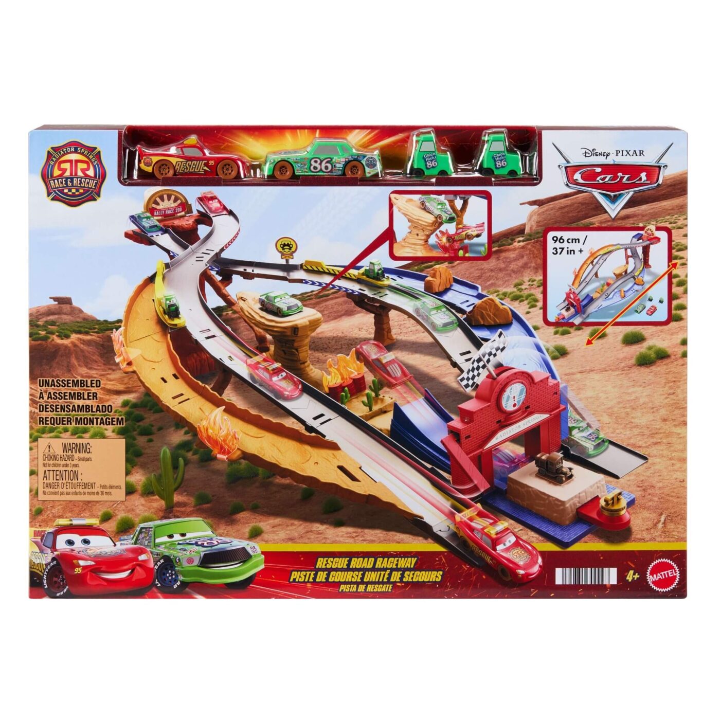 Join Lightning McQueen and friends for an action-packed adventure in the Radiator Springs Race with the Disney Pixar Cars Race & Rescue Track Set. Inspired by the hit Cars movies, this exciting playset lets kids relive the thrills of Radiator Springs as Lightning McQueen races to outsmart Chick Hicks and save the day!