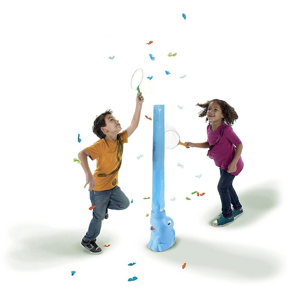 Its the classic butterfly blasting and catching game that will have children racing to catch as many fireflies as they can. The motorised baby elephant blows his 3 foot trunk into the air sending colourful fireflies everywhere! The child who catches the most fireflies in their net wins! A game for 1 to 2 players.
