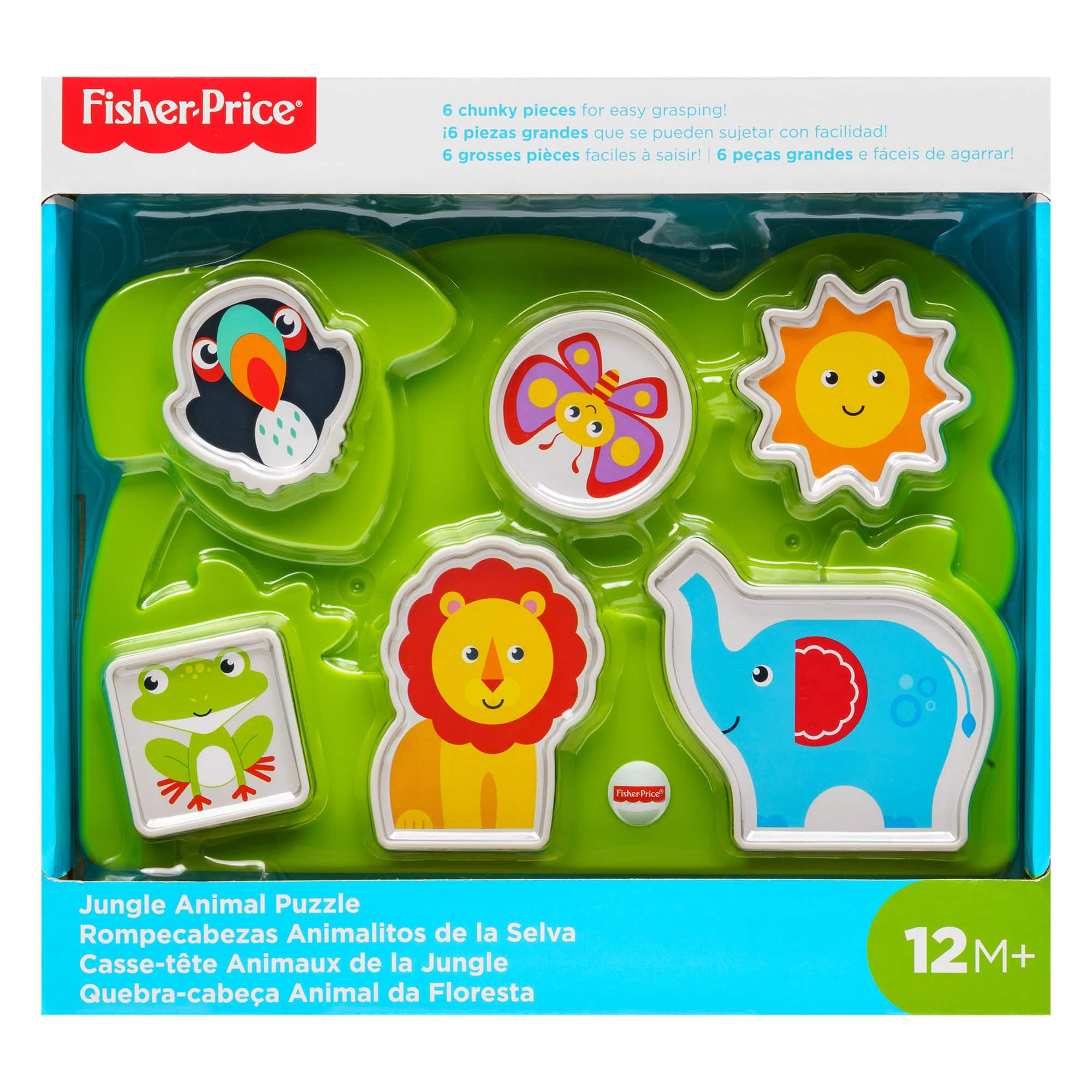 The Fisher-Price® Jungle Animal Puzzle is the perfect match for your baby's playtime. The 6 easy-grasp pieces feature friendly animal faces that match the puzzle to help little ones sort the shapes for just the right fit!