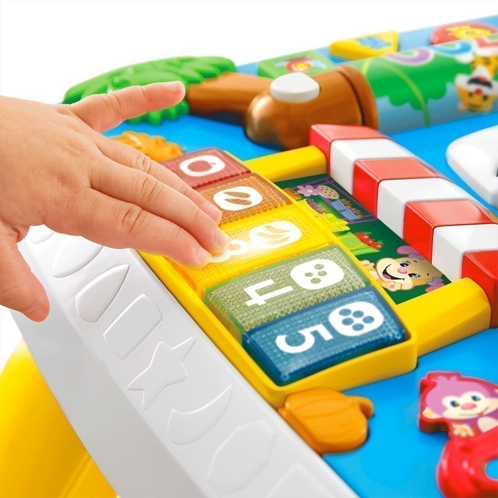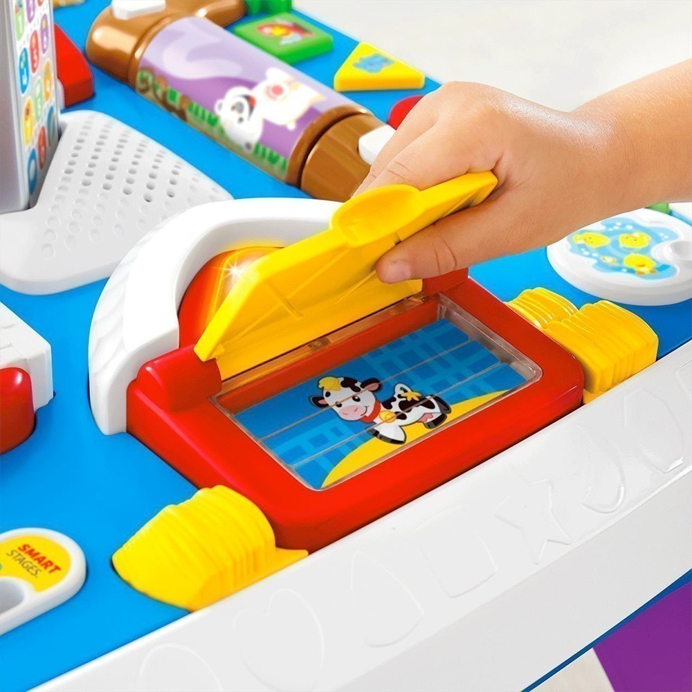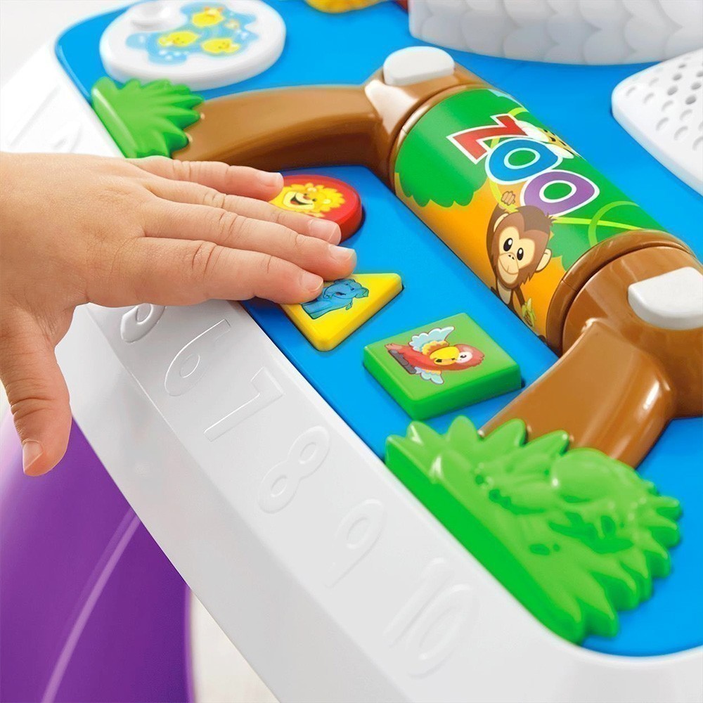 Baby will find a new place (and tons of activities) to discover around every corner of this learning table by Fisher-Price®. Head to the zoo and spin the roller to hear songs about animals - or press buttons to learn shapes in English & Spanish. Take a trip to the farm and open & close the barn door to be greeted by a different farm friend. At the market, press the keys to play the piano and learn about numbers, foods & colours. Now it's off to Puppy's home! Open & close the door to hear Puppy sing his ABCs, and flip the light switch to learn opposites. In the middle of the table, your little one can press the interactive button on the role play phone to make a "call" to Puppy or Sis, and light up a new place to visit! And there are hands-on activities all over town to keep baby busy, including sliders, spinners and more. You can even add legs for grow-with-me play that takes baby from sitting & playing to standing & cruising. Every baby learns & plays in different ways.