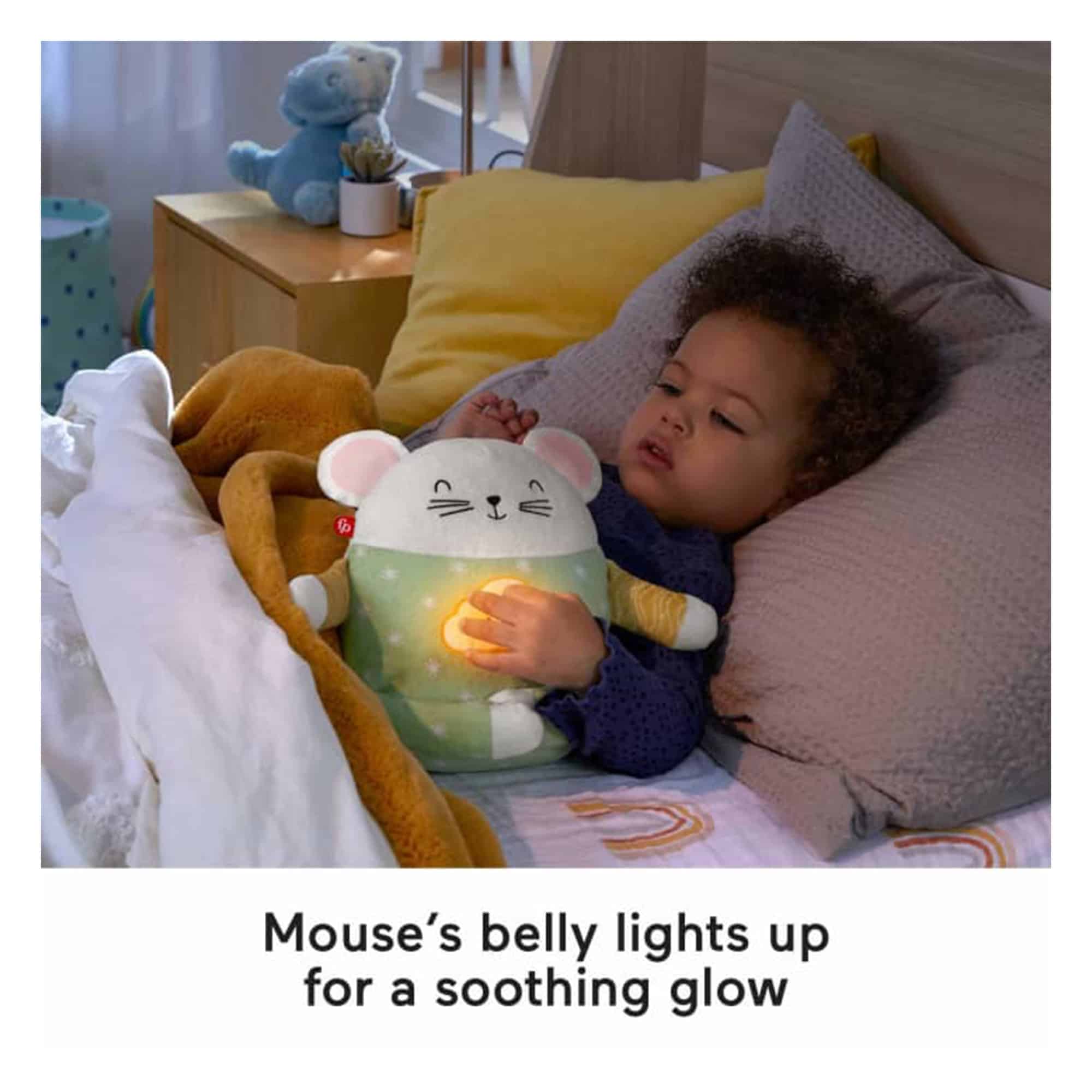 - Mouse’s glowing belly light can help calm and comfort your little meditator