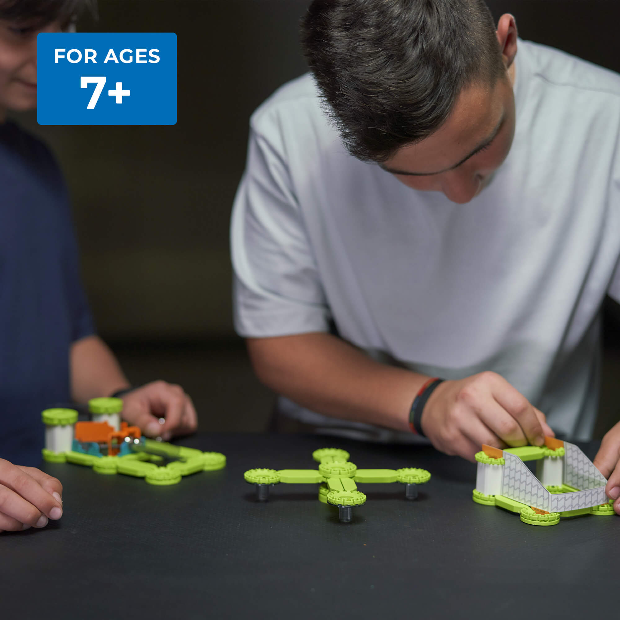 The Geomag Challenge Line adds mechanical elements to the classic magnetic rods and steel spheres, expanding the play possibilities. With parts that rotate and trigger chain reactions from magnetic attraction and repulsion, your child will love experimenting with magnetism and gravity.