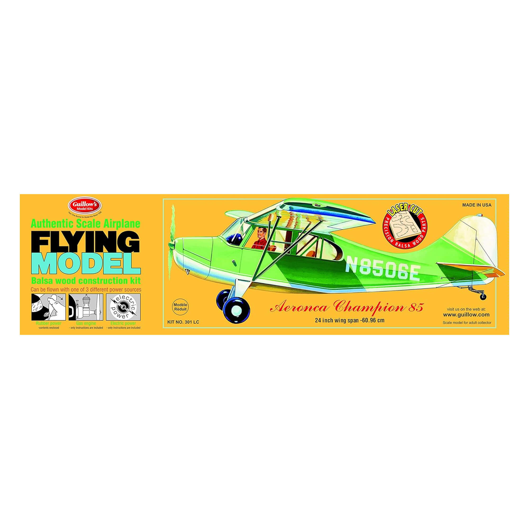The Aeronca Champion 85 model kit includes precision laser-cut balsa parts that help make assembly cleaner and more accurate. As a result, builders can spend more time enjoying the project and less time trimming parts by hand.