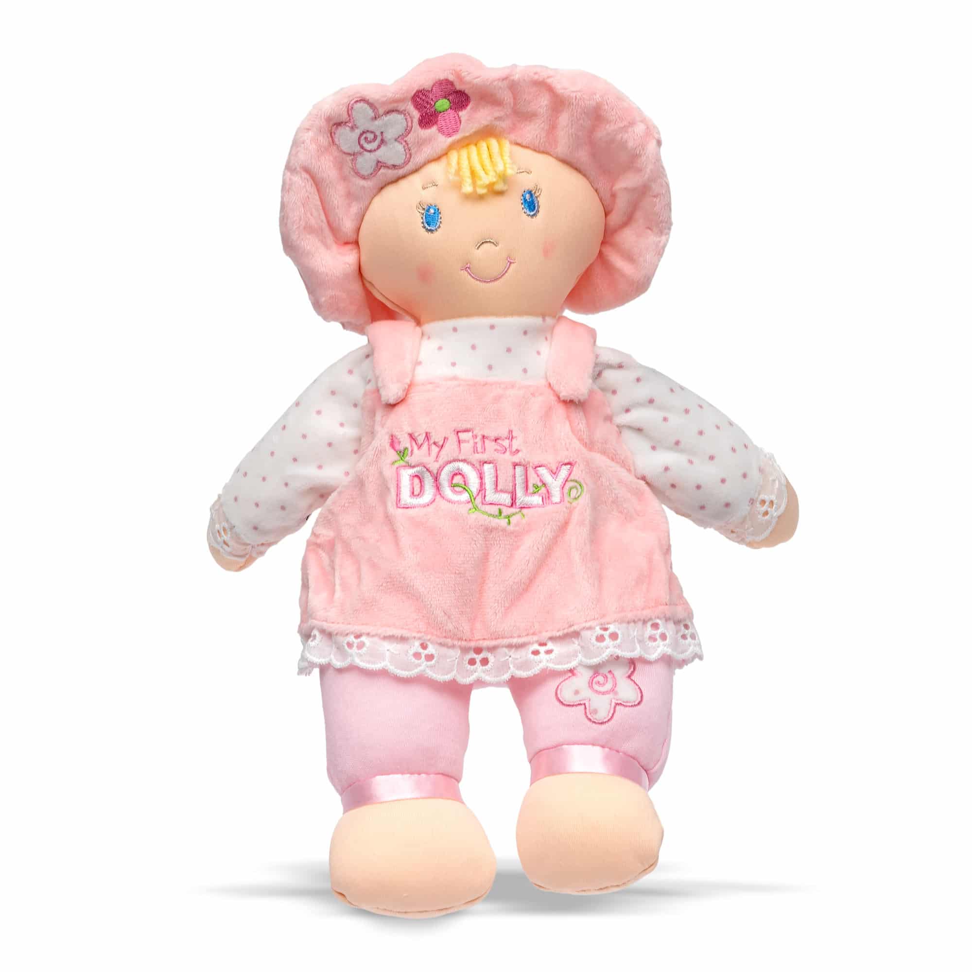 A long-lasting friendship is sure to blossom the moment your child and the My First Dolly plush toy meet. Gund® have truely crafted this adorable doll with all their love and attention that children of all ages can appreciate. Dolly features blone hair, a beautifully embroidered pink shirt with lace accents and polka dot sleeves. She is the perfect companion for any child and of any age.