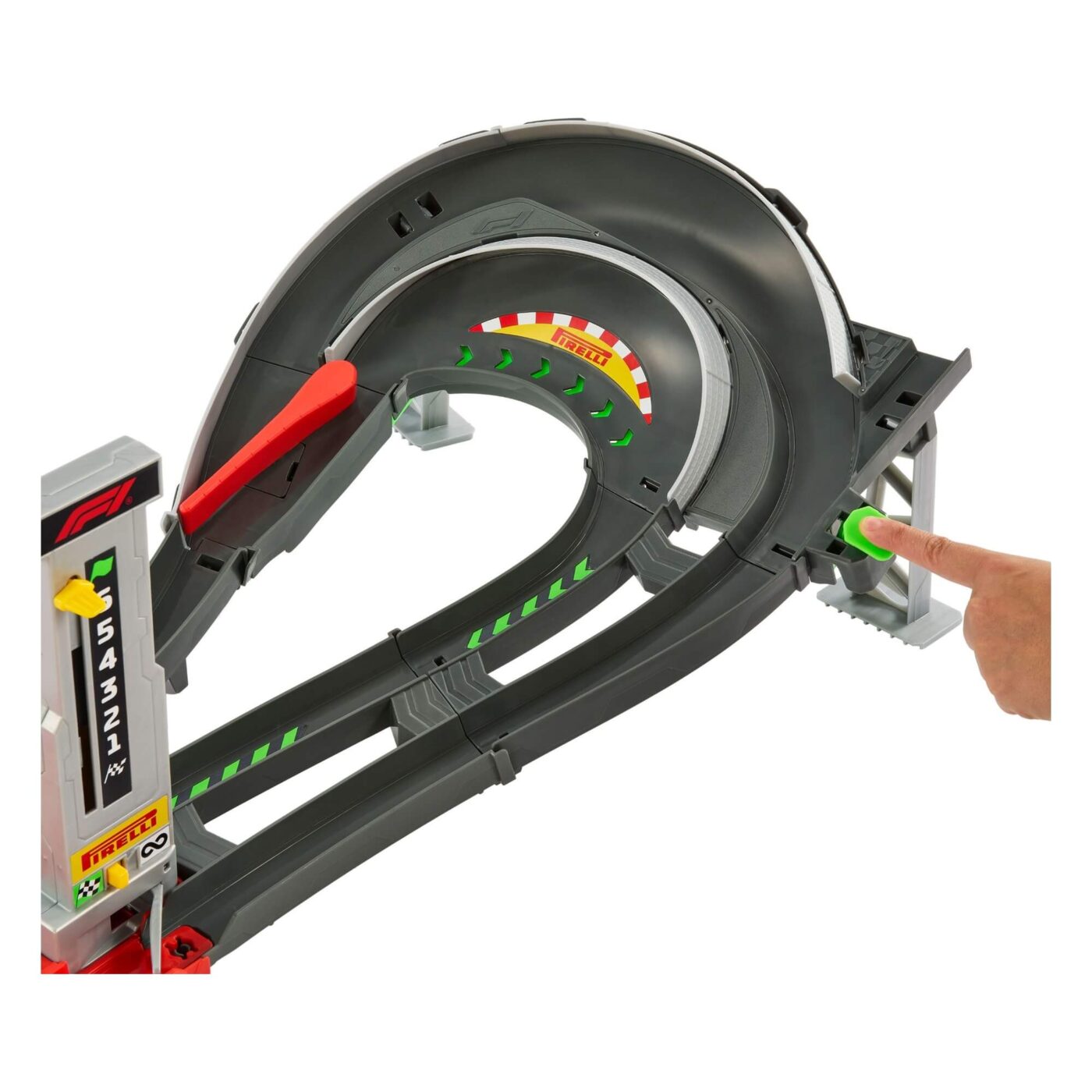 Experience the ultimate racing excitement with the Hot Wheels Formula 1 Grand Prix Circuit. Designed for high-speed competition and realistic Formula 1 action, this dynamic track set brings authentic racing to life right at home.