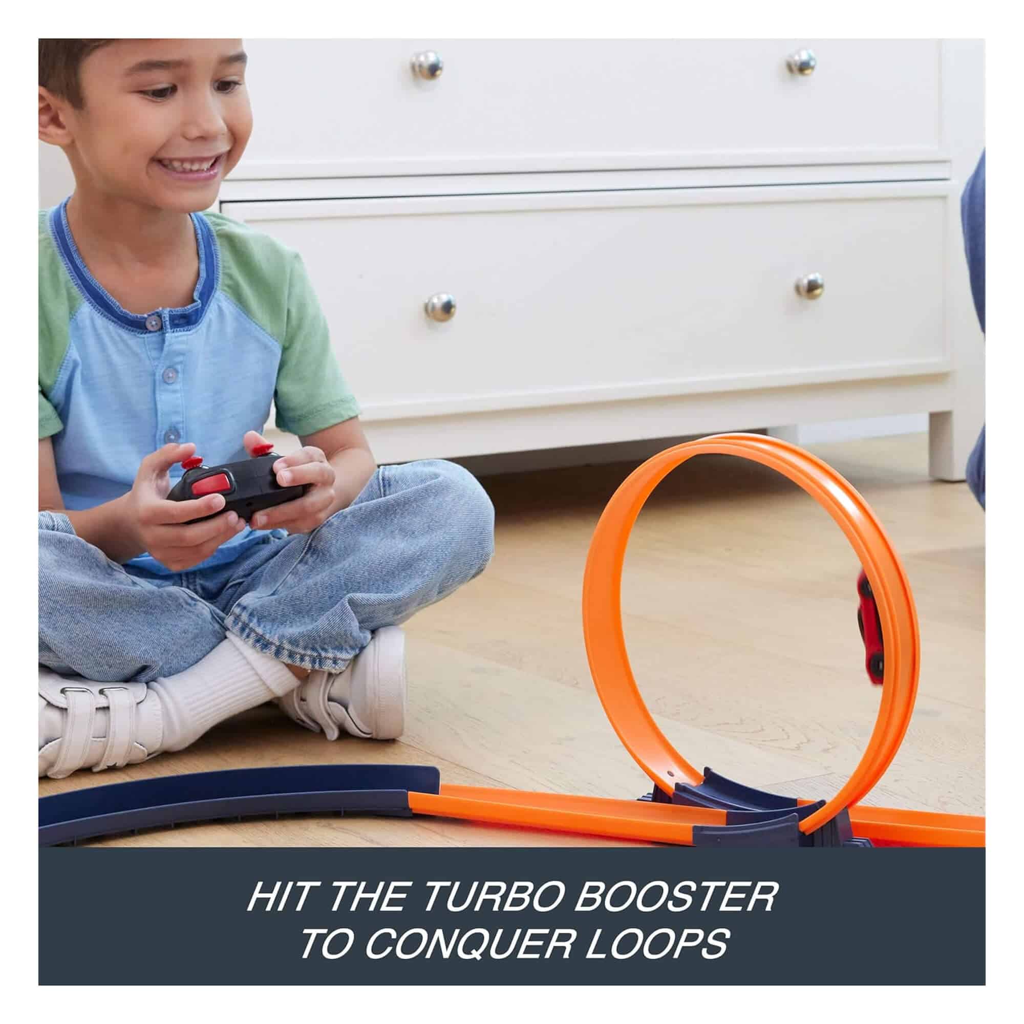 - 1:64 scale RC car compatible with Hot Wheels tracks (track sold separately)