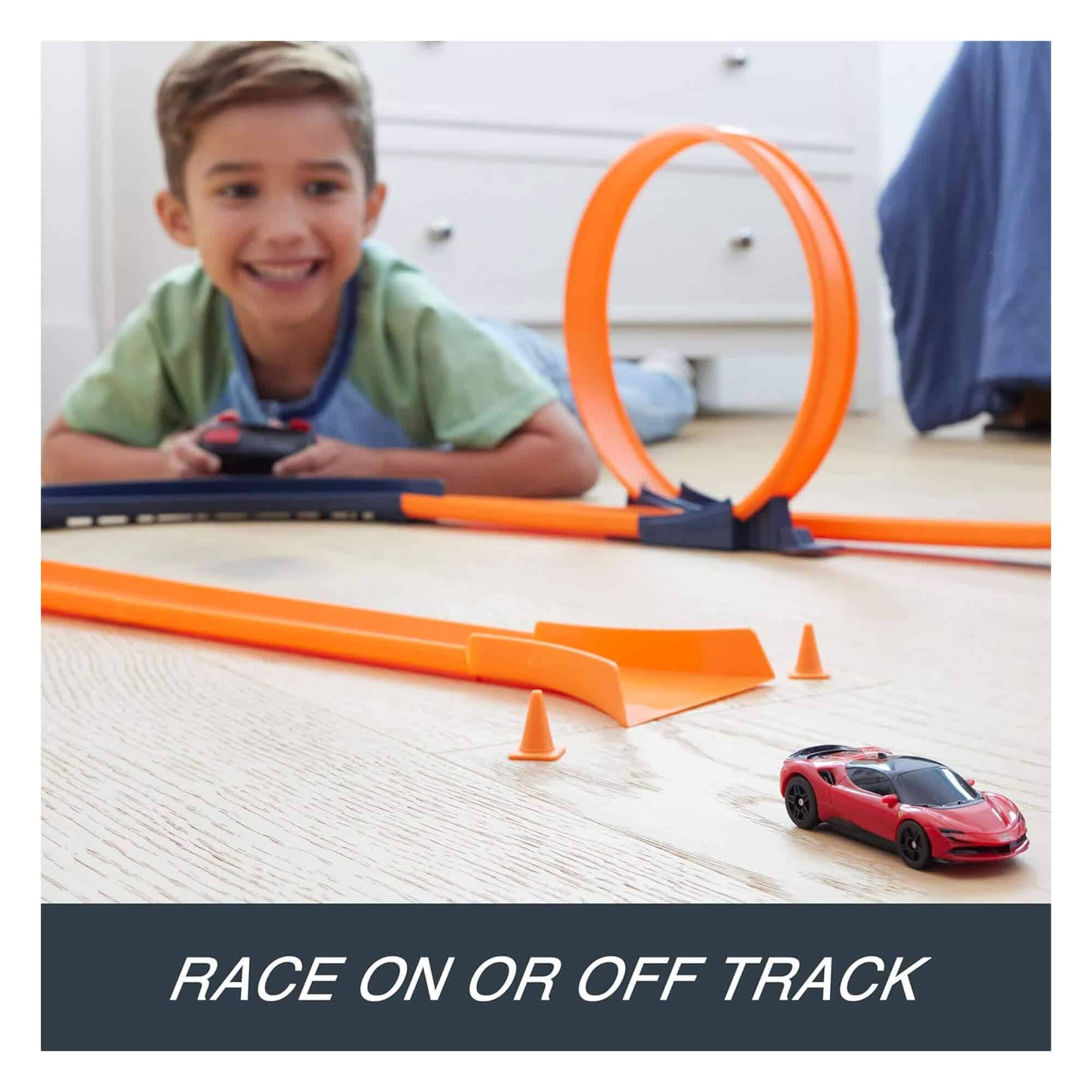 Kids will love racing the Hot Wheels RC Ferrari SF90 because it combines real supercar style with exciting remote-control action. Plus, the turbo boost feature adds an extra level of thrill, especially when tackling loops and ramps. It’s easy to control, fast, and perfect for competitive racing with friends.