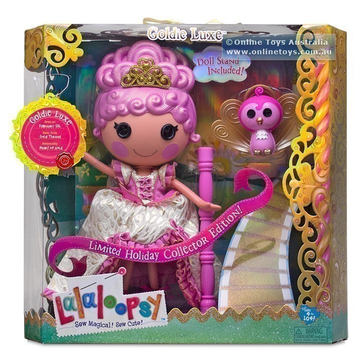 Goldie Luxe the Lalaloopsy Collector Doll comes from a magical place where she was once a rag doll. When she was brought to life she took on the personalities of the fabrics that were used to make her. Now she’s ready for fun and adventure, and wants to you come along.