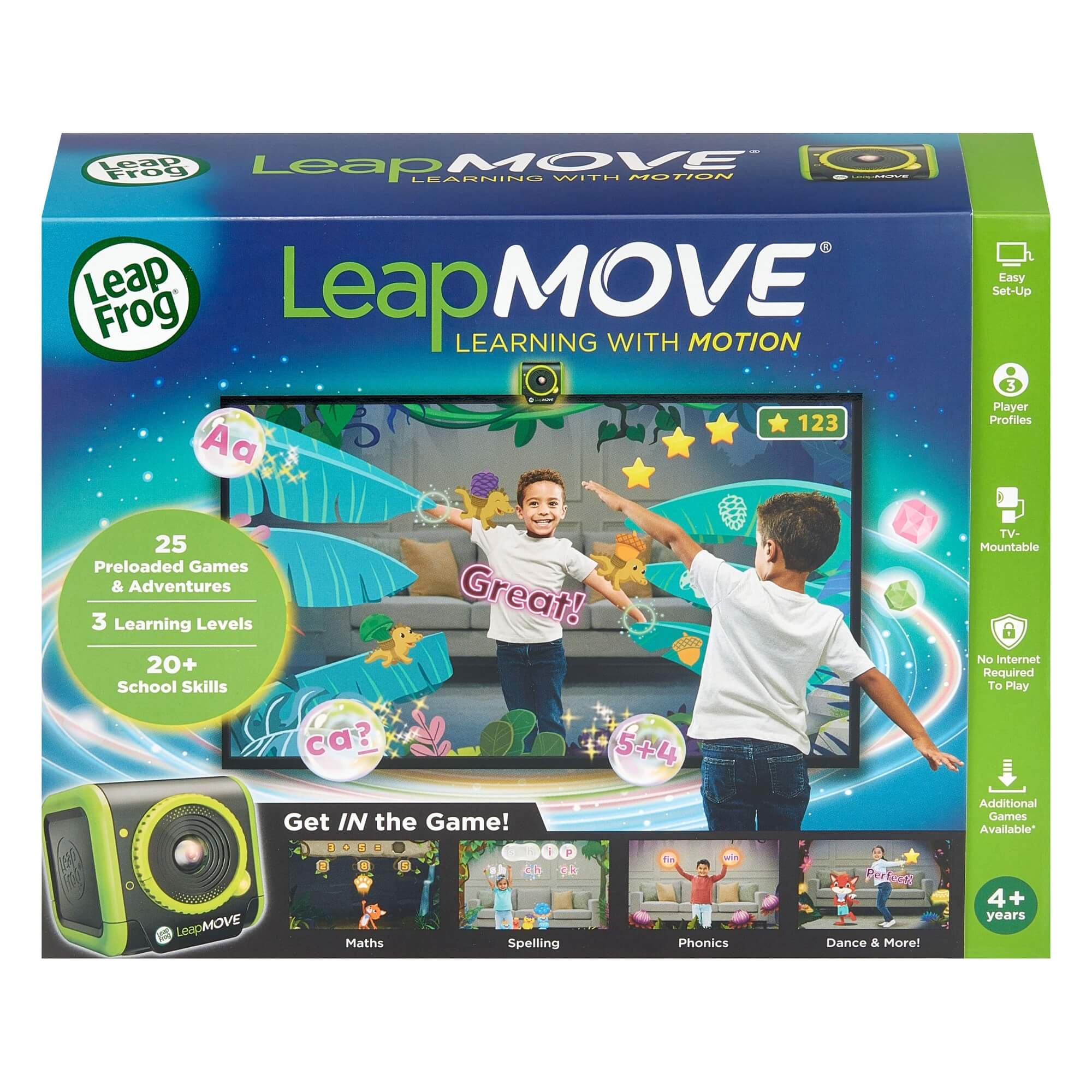 The LeapFrog LeapMove is designed to make learning feel like play from the very first game. Because children use their bodies to control the action, it keeps them engaged while encouraging active movement. In addition, the three learning levels help kids progress at their own pace, so the fun can continue as their confidence grows.