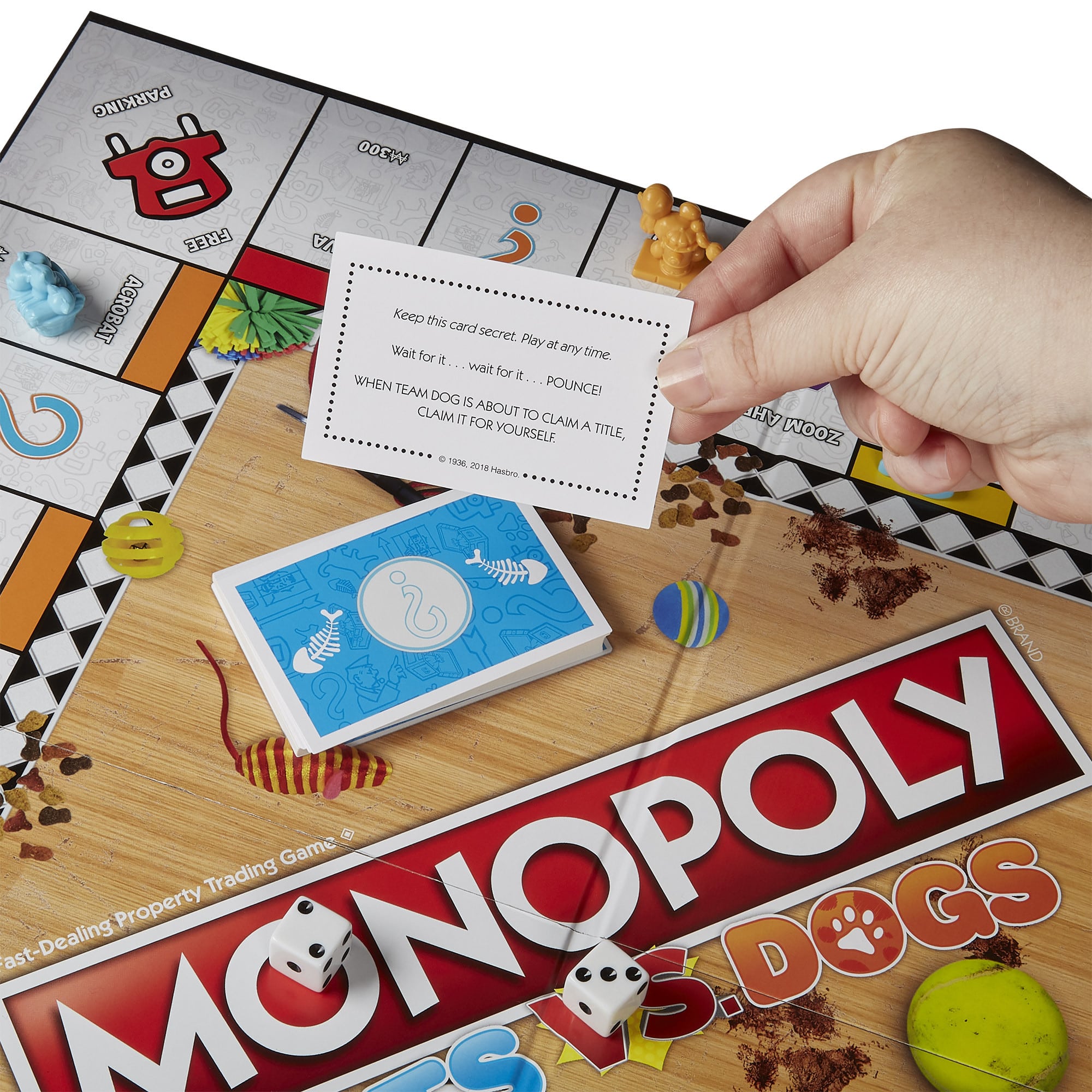 Inspired by the lively rivalry between dog and cat owners, the Monopoly Cats vs. Dogs game can be a purr-fect game for pet lovers everywhere. This edition of the Monopoly board game is designed to be played in teams. Join Team Cat or Team Dog and move around the board to claim titles such Fashionista, Bright Eyes, and Comic Relief. The game ends when all titles have been claimed and the team with the most titles wins. The winners can say that their furry friends are indeed the best pets!
