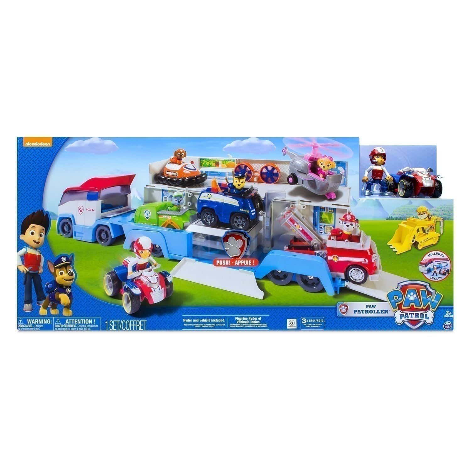 The pups are on the move! The PAW Patroller is the ultimate rescue vehicle and is perfect for making sure that the PAW Patrol team can get to new adventure locations. Kids can drive their PAW Patrol vehicles in and head out together for a brand new rescue missions! The PAW Patroller comes with Ryder and his ATV vehicle and can hold 3 Paw Patrol vehicles inside and can display 6 vehicles when open.