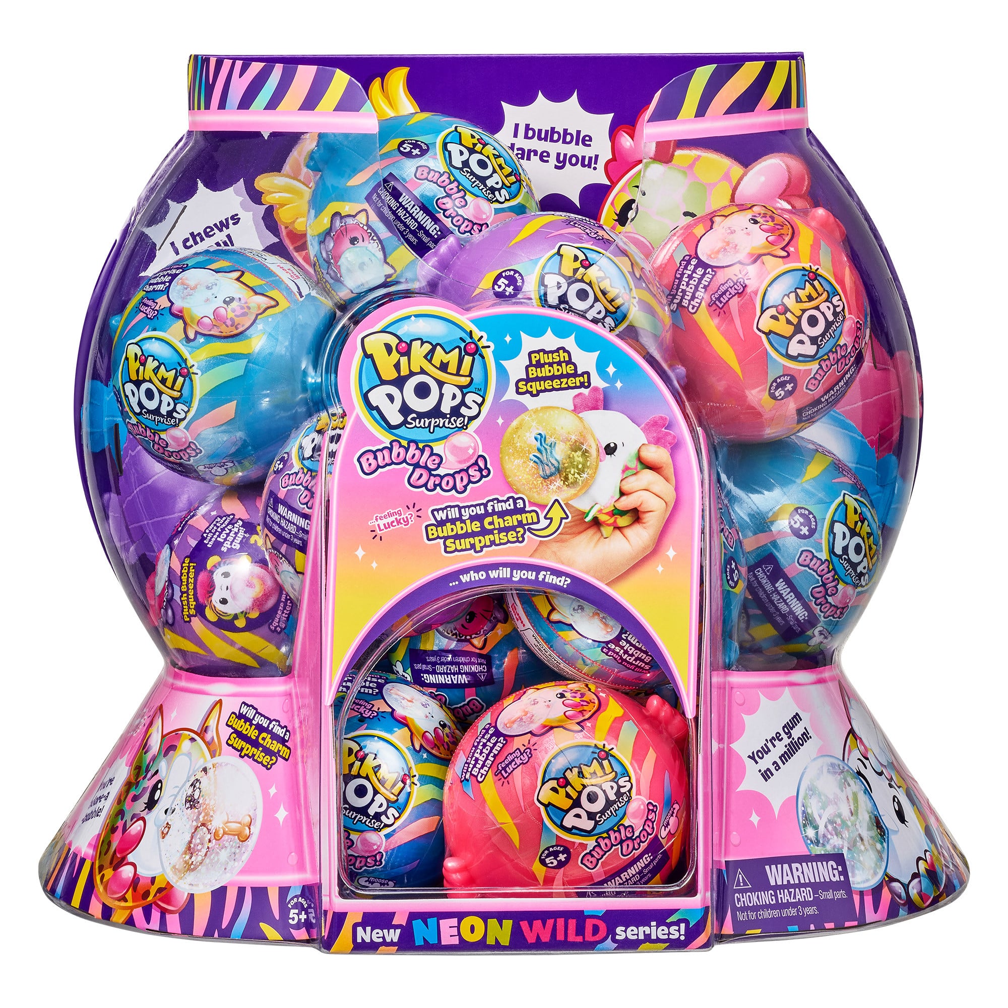 Squeeze to discover Pikmi Pop bubble goodness with the Bubble Drops Neon Wild Series! These furry balls of colour and fun feature a bubble squeezer filled with sparkly coloured glitter! Unbox to reveal a surprise Pikmi Pops character and squeeze to see bubble blowing action!