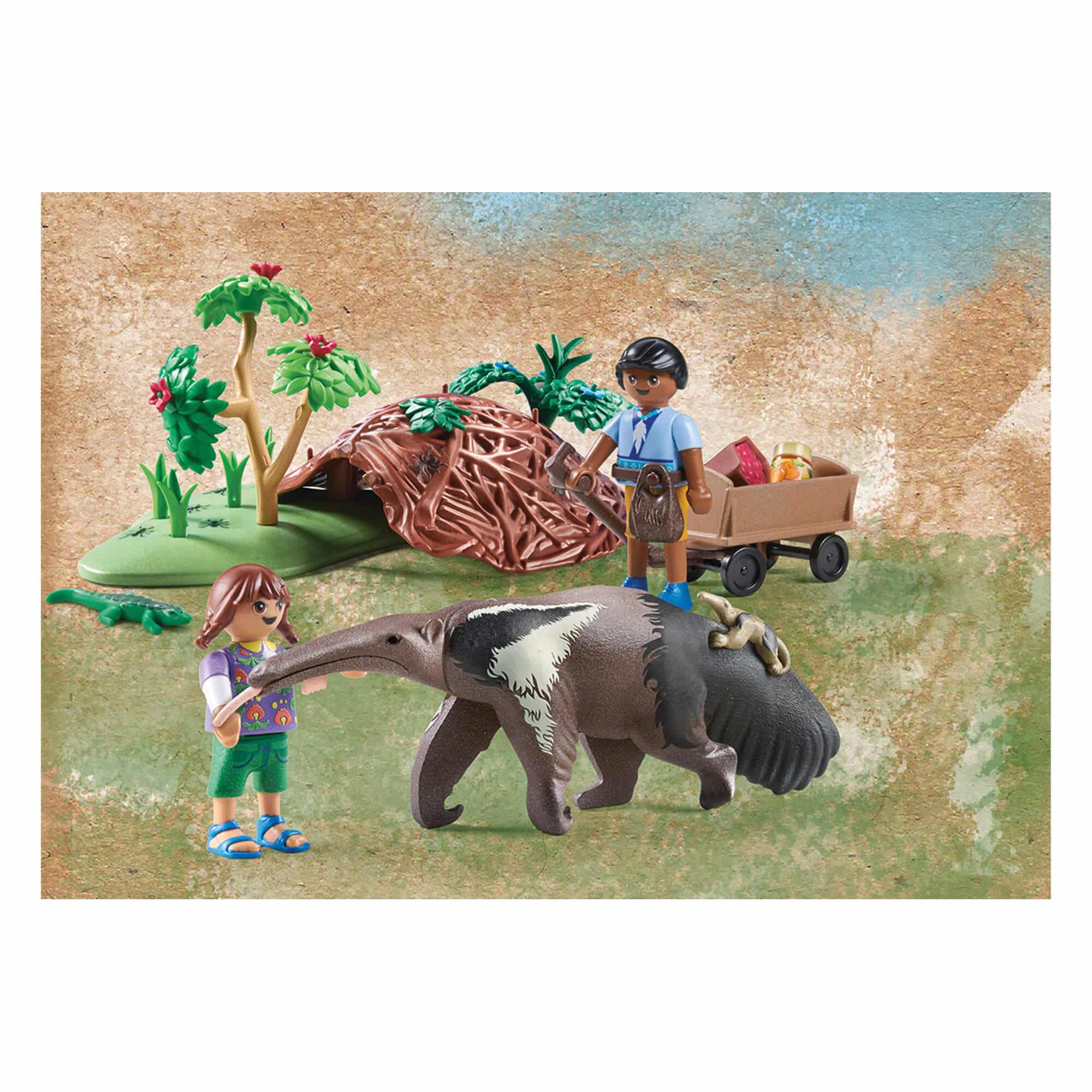 Playmobil Wiltopia Anteater Care set offers an immersive play experience for children aged 4-10. This 39 piece set with two teenage figures, a mother anteater and her baby, a lizard, an anthill with plants, a handcart, animal food, and more, kids can create exciting scenarios of caring for and interacting with the animals in their natural habitats.