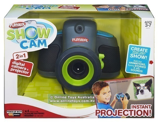 Give your kids a way to add fun animations, stories and sounds to the pictures they take with the Showcam Digital Camera and Projector! With more than 50 silly effects to choose from, this 2-in-1 camera and projector lets them snap pics and customise them! With the flip of a switch they can project their pictures too. The buttons, controls and grips are all kid-sized for easy use, and the editing functions are built in so they don't need software. It's easy to save, print and email pictures if you have a USB cable! Get your little ones creating digitally with the Showcam Digital Camera and Projector!