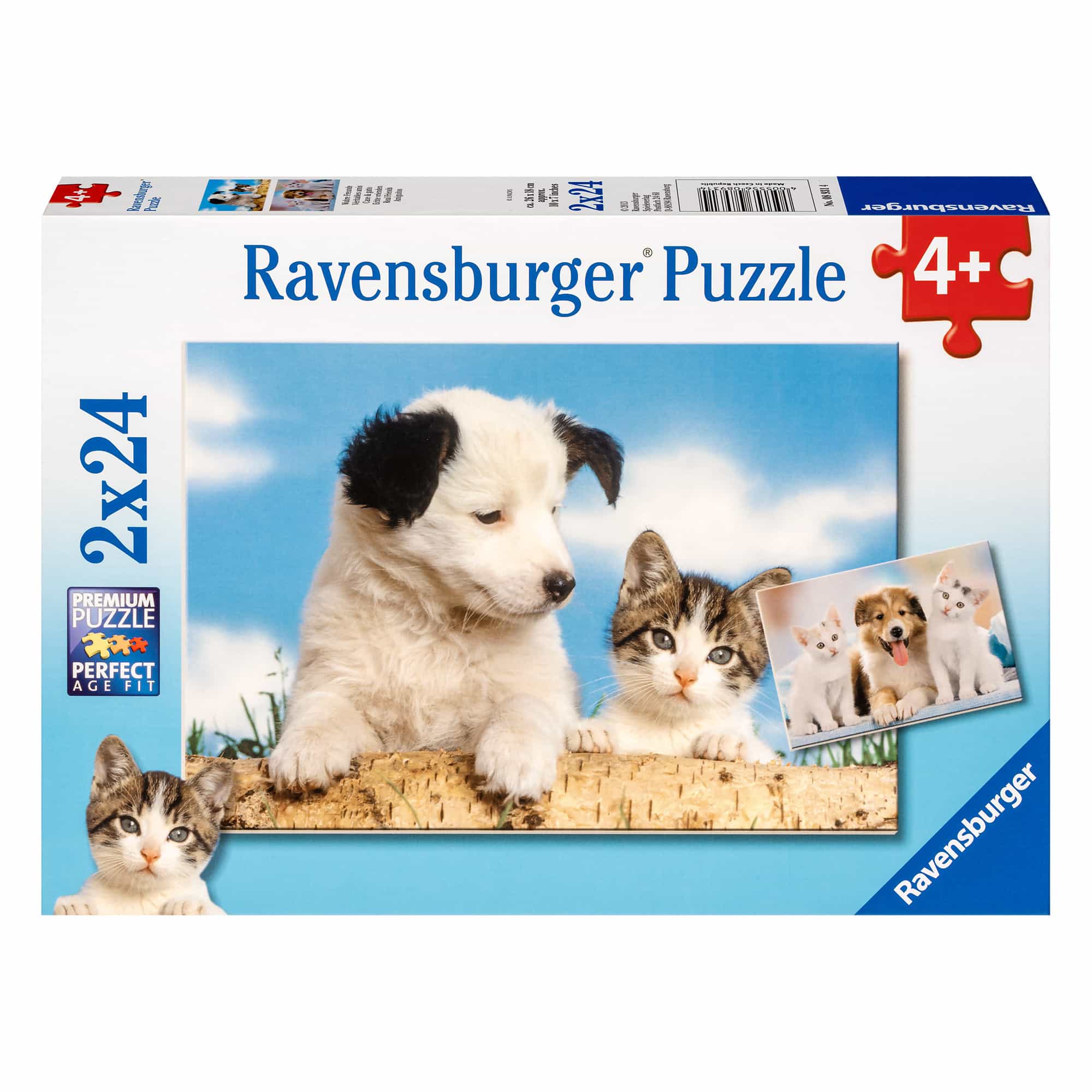 Jigsaw Puzzle pack includes two, melt-your-heart puzzles featuring friendships between cats and dogs. These real friends are so adorable and so cute you'll wish they were your pets to own. Each Ravensburger 24-piece puzzle is 26cm X 18cm in size when complete.
