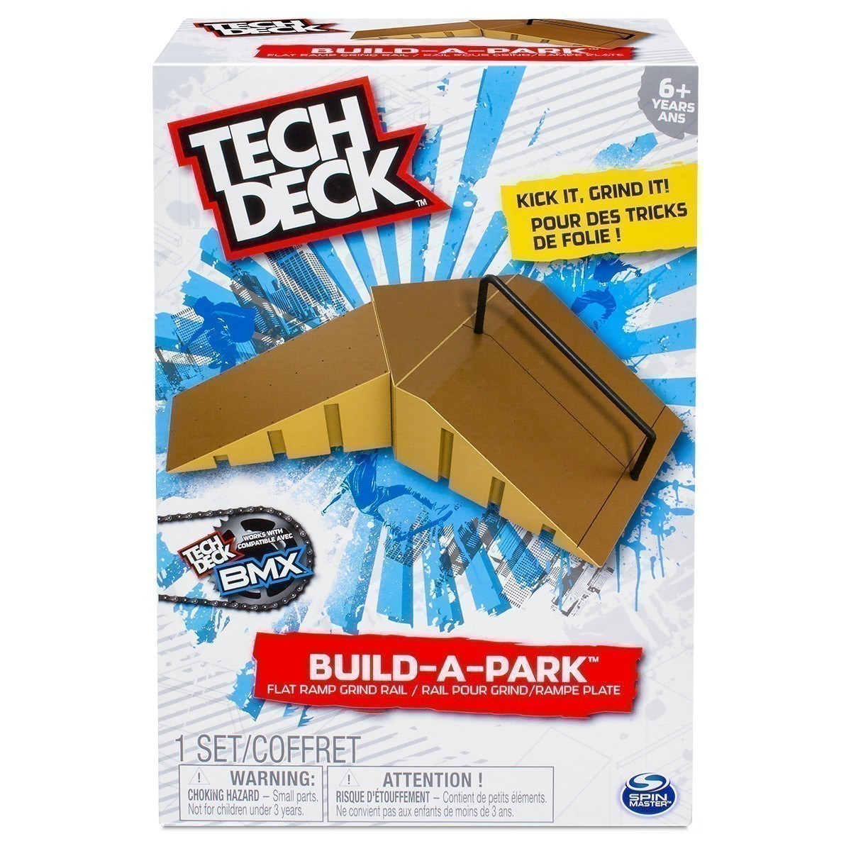 The Build-A-Park range of skateparks you can use to test your fingerboarding skills and tricks. Choose from three awesome sets including the ‘Kicker to 6 Stair Rail’, the ‘Flat Ramp Grand Rail’ and the ‘Launch to Quarter Pipe’ skatepark. So matter if you prefer to ‘hit the rails’ or ‘catch some air’, each skate park lets you ‘roll’ the way you want to using your favourite Tech Deck fingerboard or Tech Deck BMX.