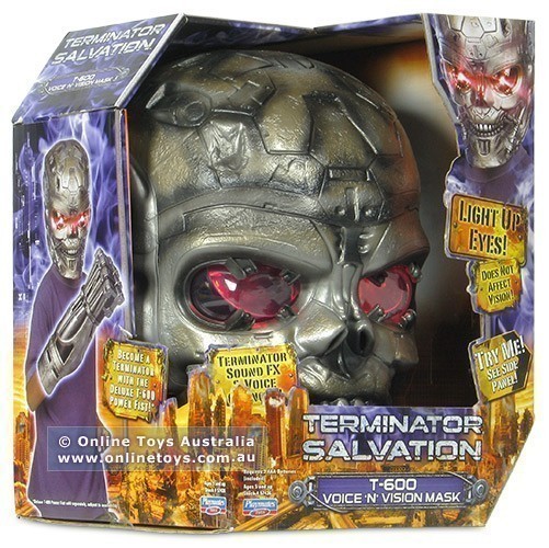 Seen the movie? Now wear the mask and become a lethal Terminator Robot! Features voice changer, sounds, and floating red eye technology!