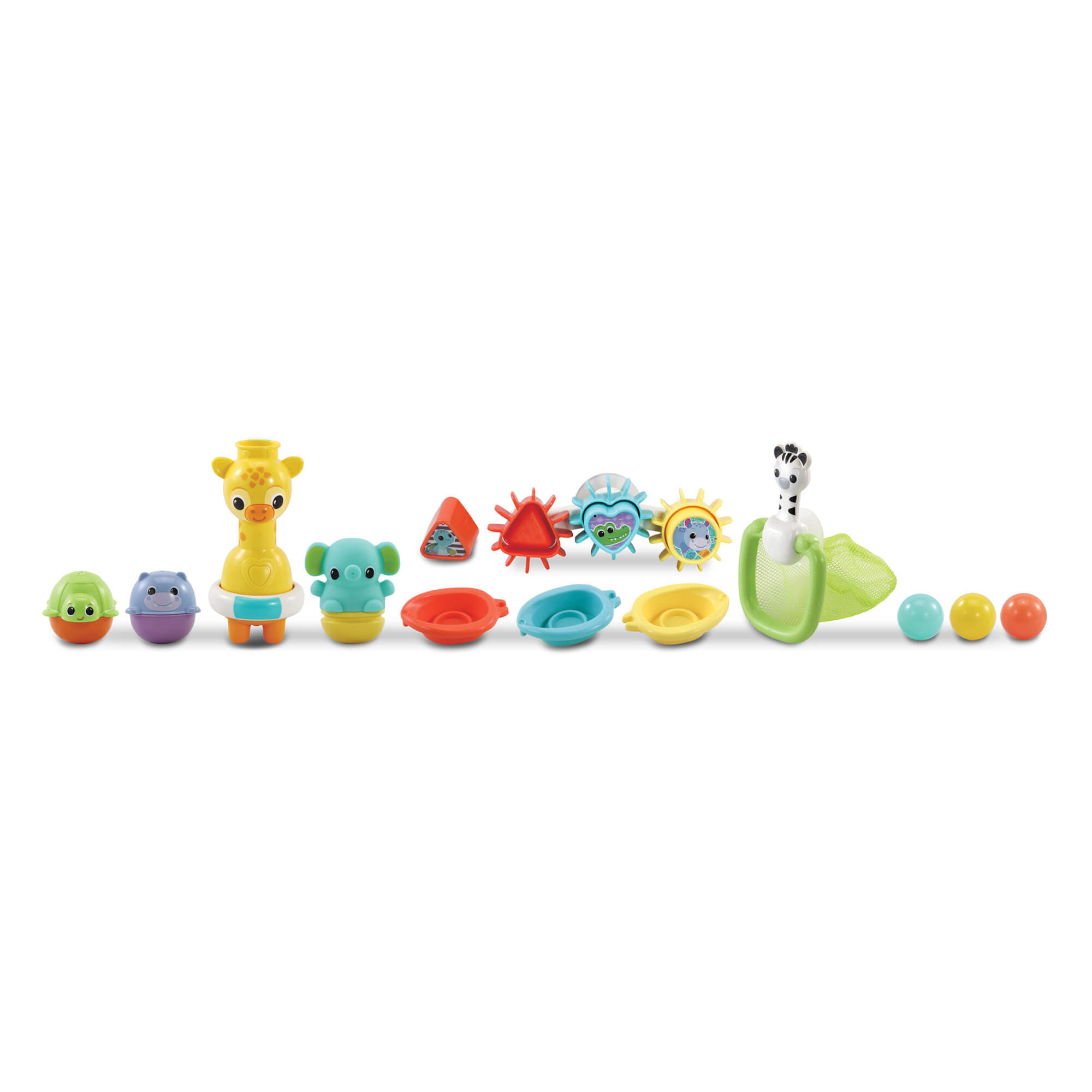 The bath net can be used to scoop up the balls or stick the zebra and net to the wall for exciting throwing play. The stackable boats feature numbers and vibrant colors, promoting number and color recognition while encouraging imaginative play.