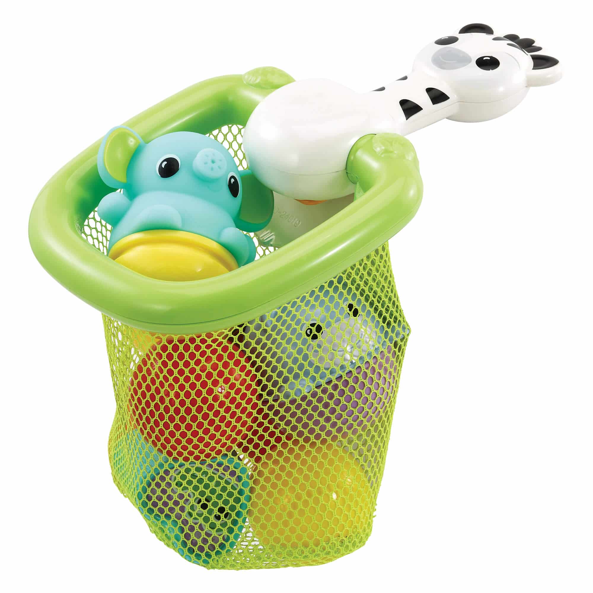 - Bath net for scooping balls or wall attachment for throwing play