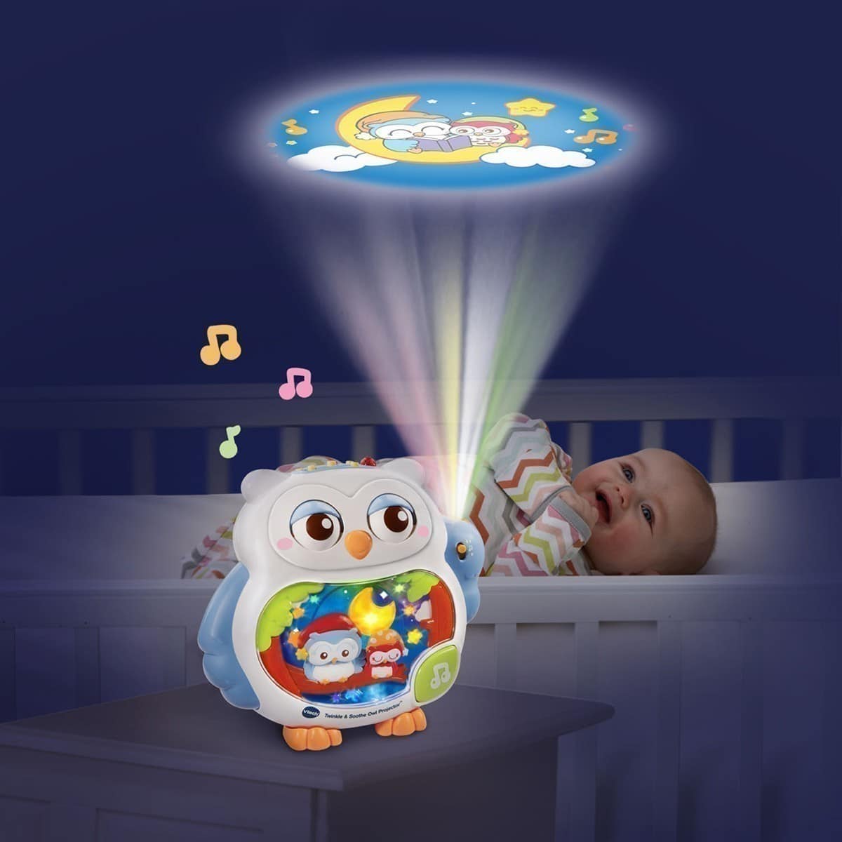 Sleepy Owl Nightlight from Vtech® features a magical light up rotating background, 40 relaxing melodies and light projector to help sooth baby to sleep. Includes 2 modes of play, melodies and nature sounds.