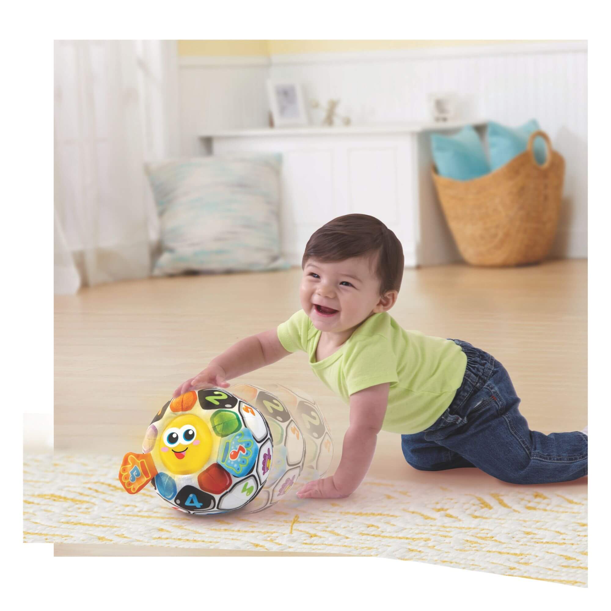 - The built-in motion sensor activates additional sounds and phrases as your child moves the ball, enhancing motor skills through active play.