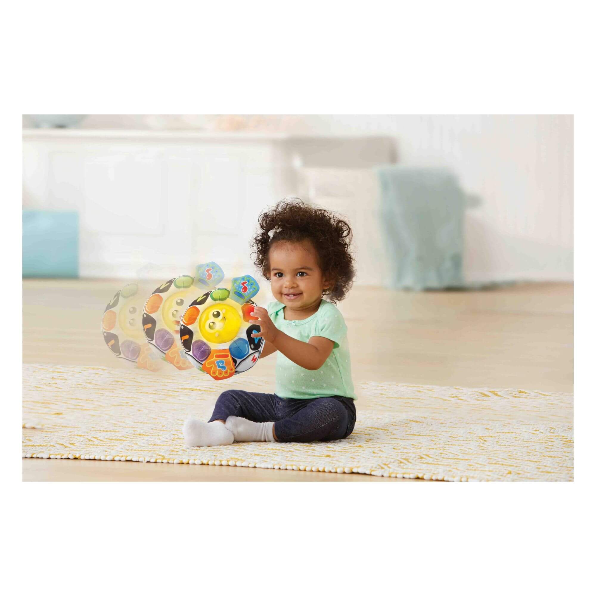 - Interactive Play: Press the soft, light-up face button to hear 3 sing-along songs, 15 melodies, and encouraging phrases that promote language development and imitative play.