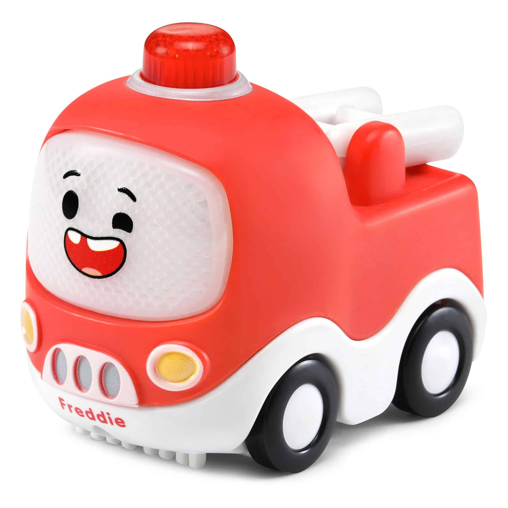 Join Vtech Toot Toot Drivers Cory Carson Freddie, the firetruck and best friend of Cory Carson, on exciting adventures in Bumperton Hills as seen in the Netflix series. Enhance your playtime by pressing Freddie’s light-up windscreen to hear him talk and sing about the color red and play four sing-along songs and six melodies.