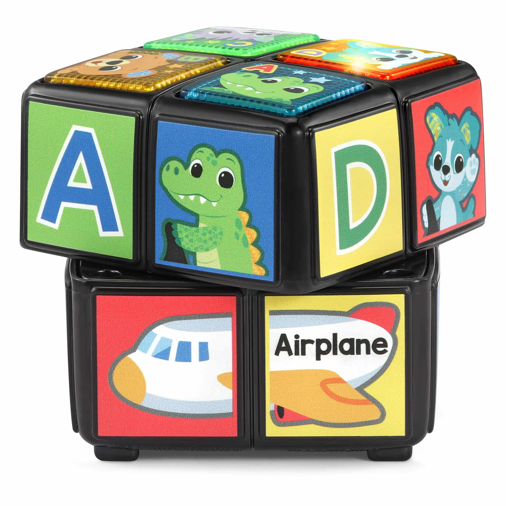 By turning the cube left or right, your baby will trigger fun learning phrases and be introduced to animals, phonics, vehicles, and colors. The cube features four light-up buttons on top, encouraging your baby to interact, twist, and discover. These buttons create an interactive experience, allowing your baby to actively engage with the cube and explore different concepts.