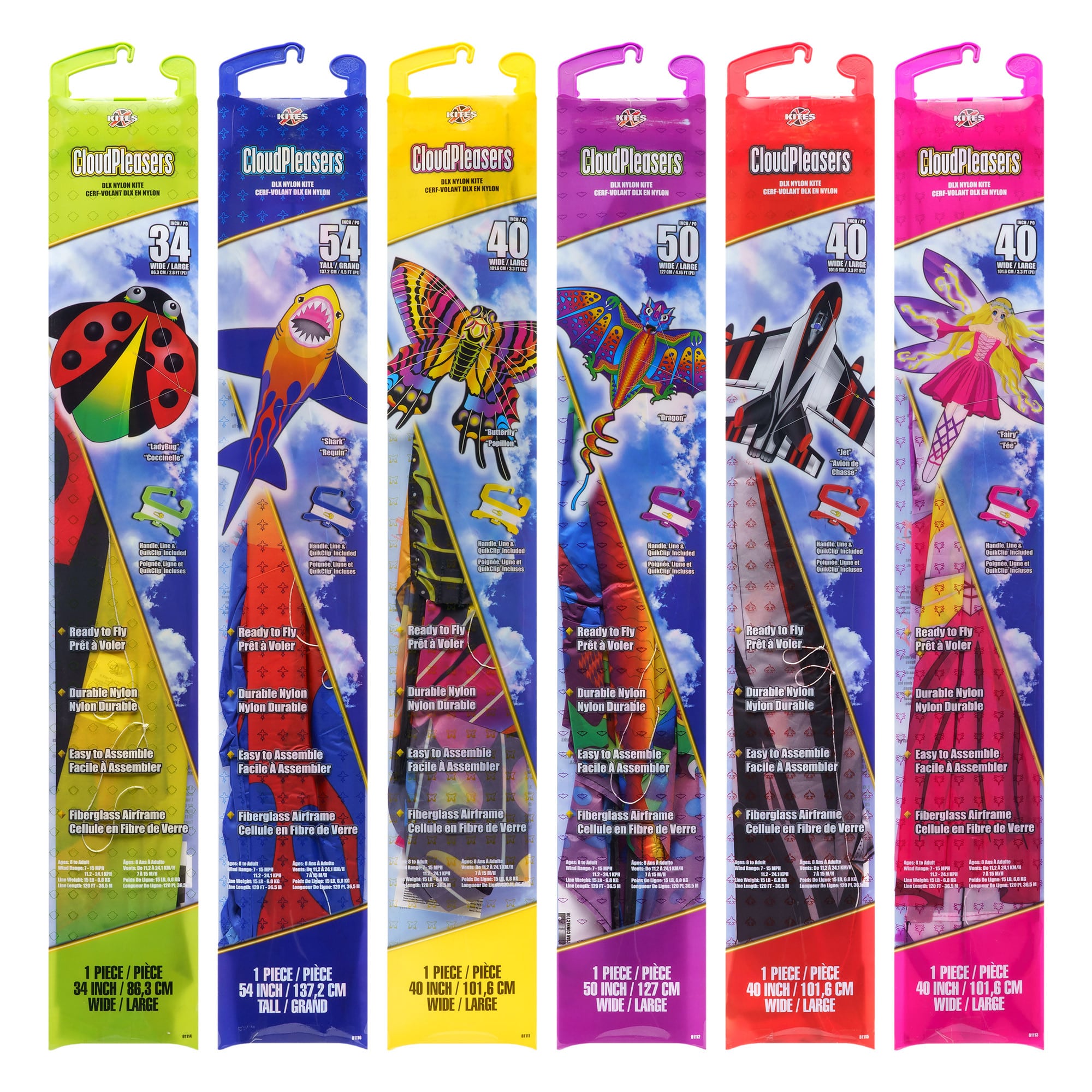 The sky is the limit with this superb selection of CloudPleaser kites from XKites. There are 6 designs in the range and each design comes packed with a handle, line and QuickClip. Kites require minimal assembly so they're ready to fly quickly and with minimal fuss. Made from durable nylon and a fiberglass frame, these kites are designed to last and last. Each sold separately & subject to availability.